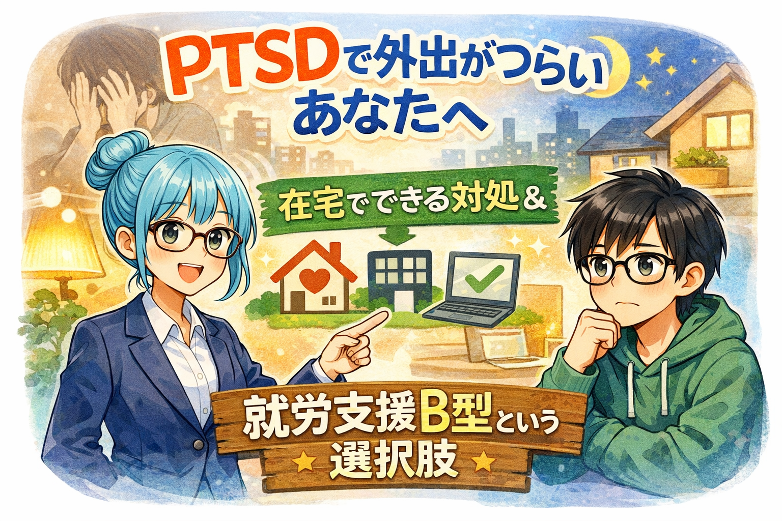 「急に思い出してしんどくなる…」「外に出るのが怖い日がある…」「眠れないし、ずっと緊張してる感じがする…」 もし今こんな状態なら、まず言いたいのはこれだよ。それ、あなたのせいじゃないよ😊PTSD(心的外傷後ストレス障害) […]