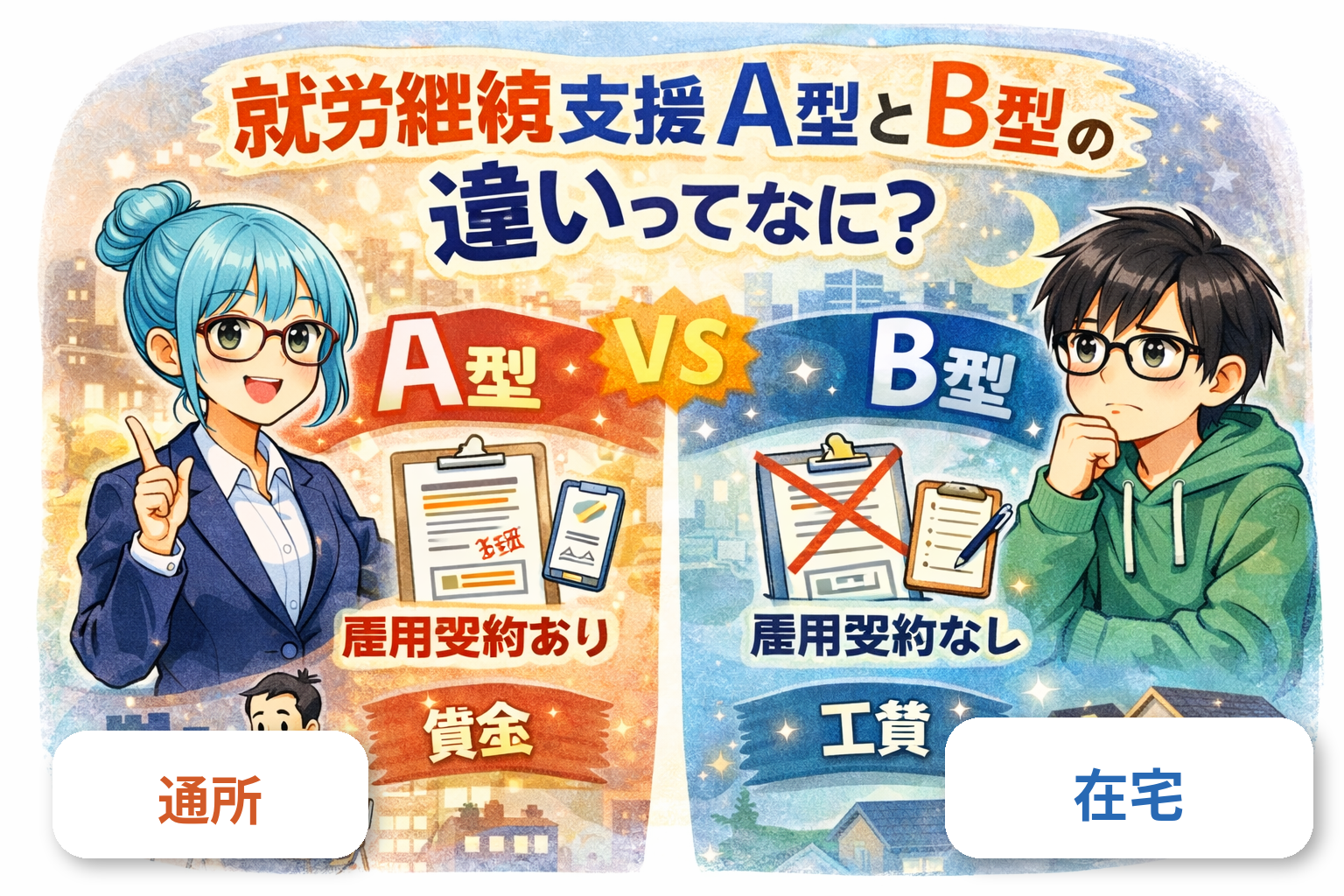 就労継続支援A型とB型の違いってなに?在宅で考えるポイントも解説😊 「A型とB型って聞くけど、結局なにが違うの?」就労支援を探していると、ここで止まる人が多いんだよね。今日は、みくちゃんとラボくんで 違いをスッキリ整理し […]
