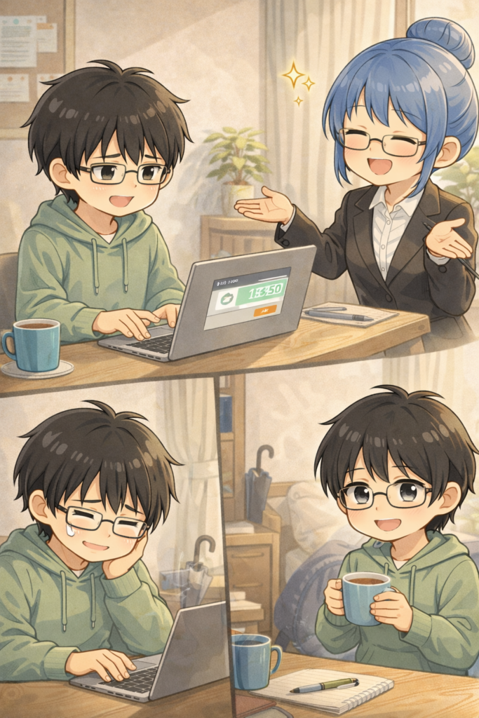 “午前に少し”+“午後に少し”みたいに分けられるのも、在宅メインのやりやすさだね」