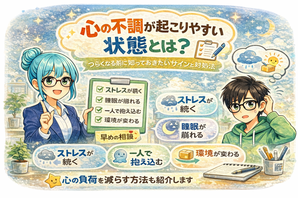 - ストレス、睡眠、孤立、環境変化が重なると負荷が上がりやすい