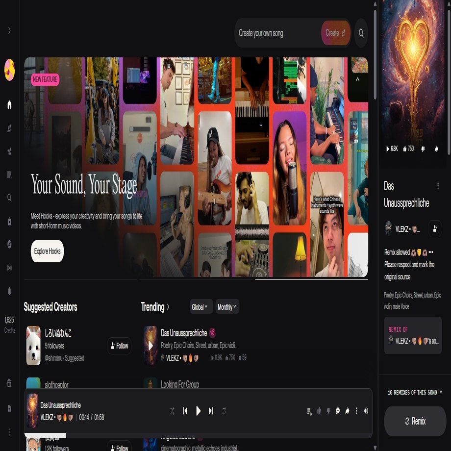- 高品質な楽曲: AIが作曲、編曲、ボーカルまで担当し、クオリティの高い楽曲を生成。