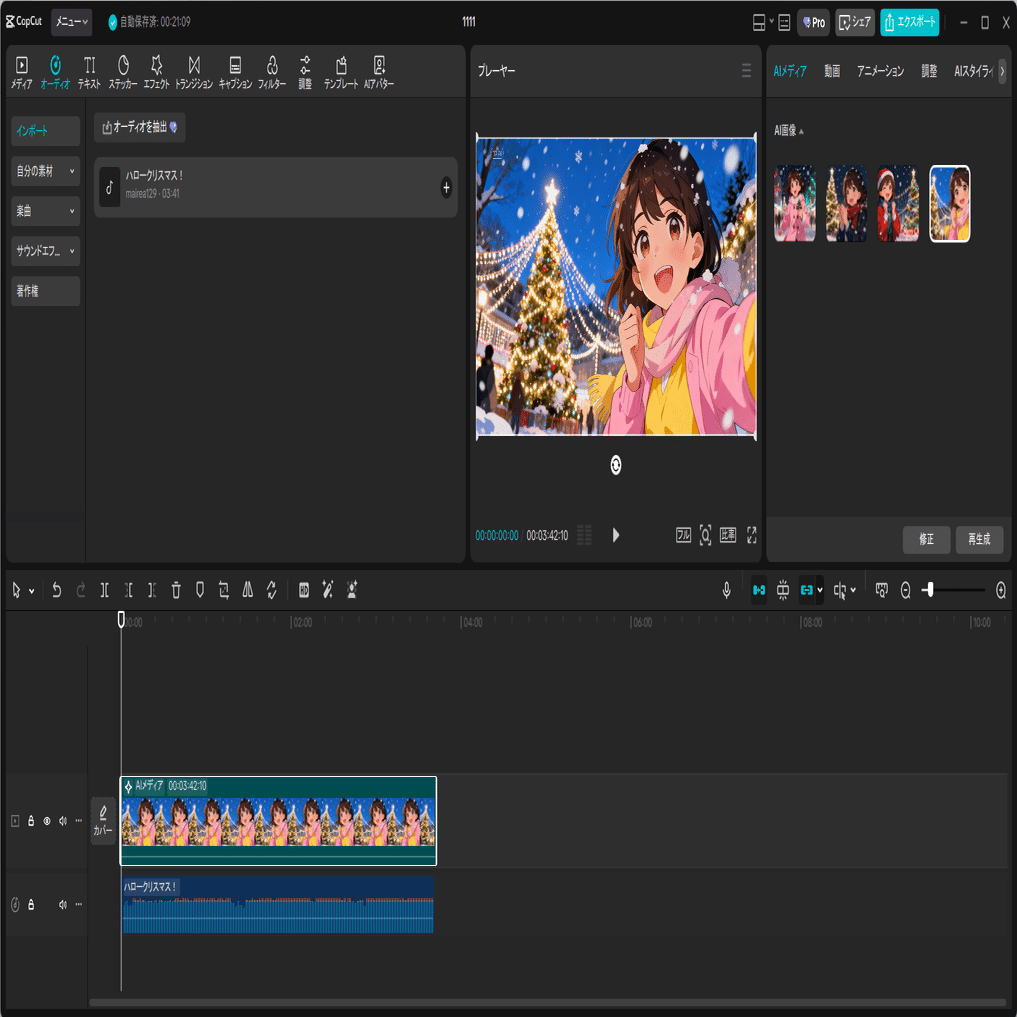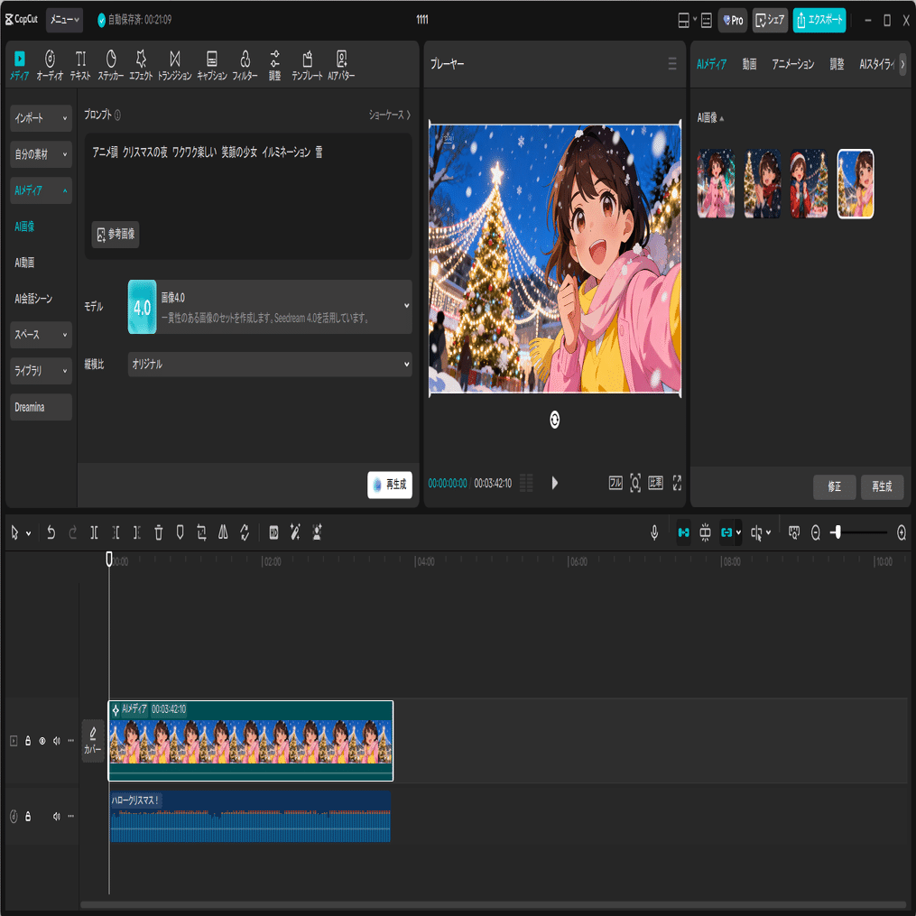 CapCutはイラストもAI生成できて、スマホでもできるのでおすすめです。